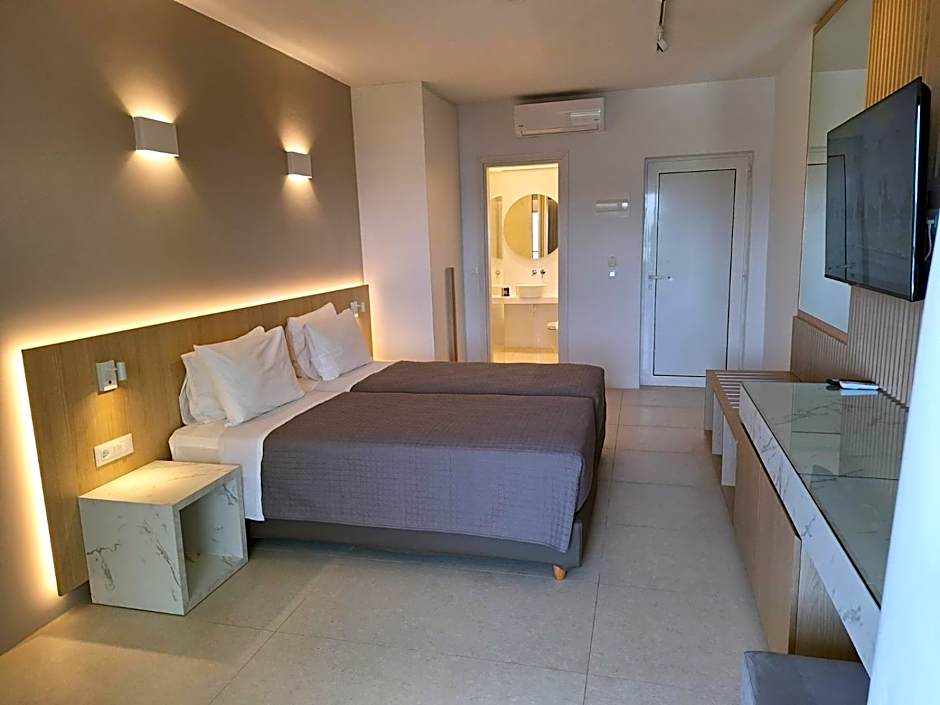This twin/double room is located in the top floor and offers Superior Aegean Sea views from its furnished balcony. This room features air conditioning, free WiFi, bathroom with bathtub or shower, a satellite TV and a sofa bed. The room also includes daily housekeeping services.
